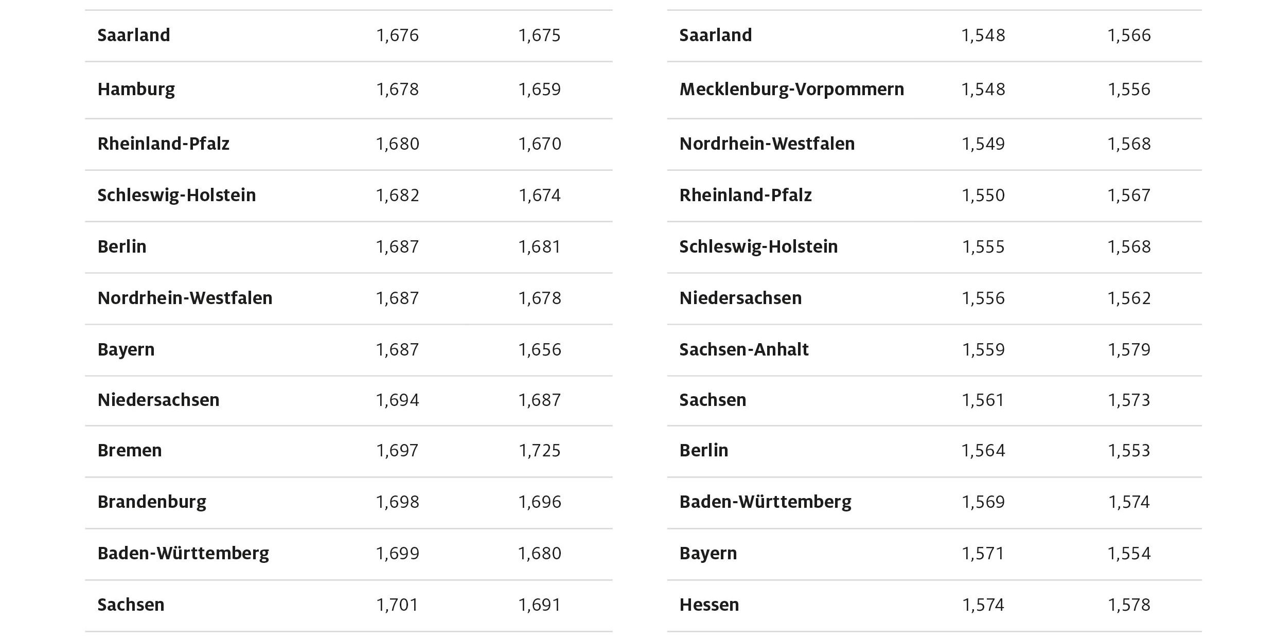 Ein Liter Super E10 kostet laut ADAC in Mecklenburg-Vorpommern und dem Saarland 1,676 Euro, das sind 3,3 Cent weniger als in Thüringen und Hessen, wo E10 aktuell bei 1,709 Euro liegt. Diesel ist in Hamburg am günstigsten: Der Preis für einen Liter rangiert hier bei 1,541 Euro. Im nur etwa 100 Kilometer entfernten Bremen kostet Diesel hingegen 1,581 Euro und damit vier Cent mehr.