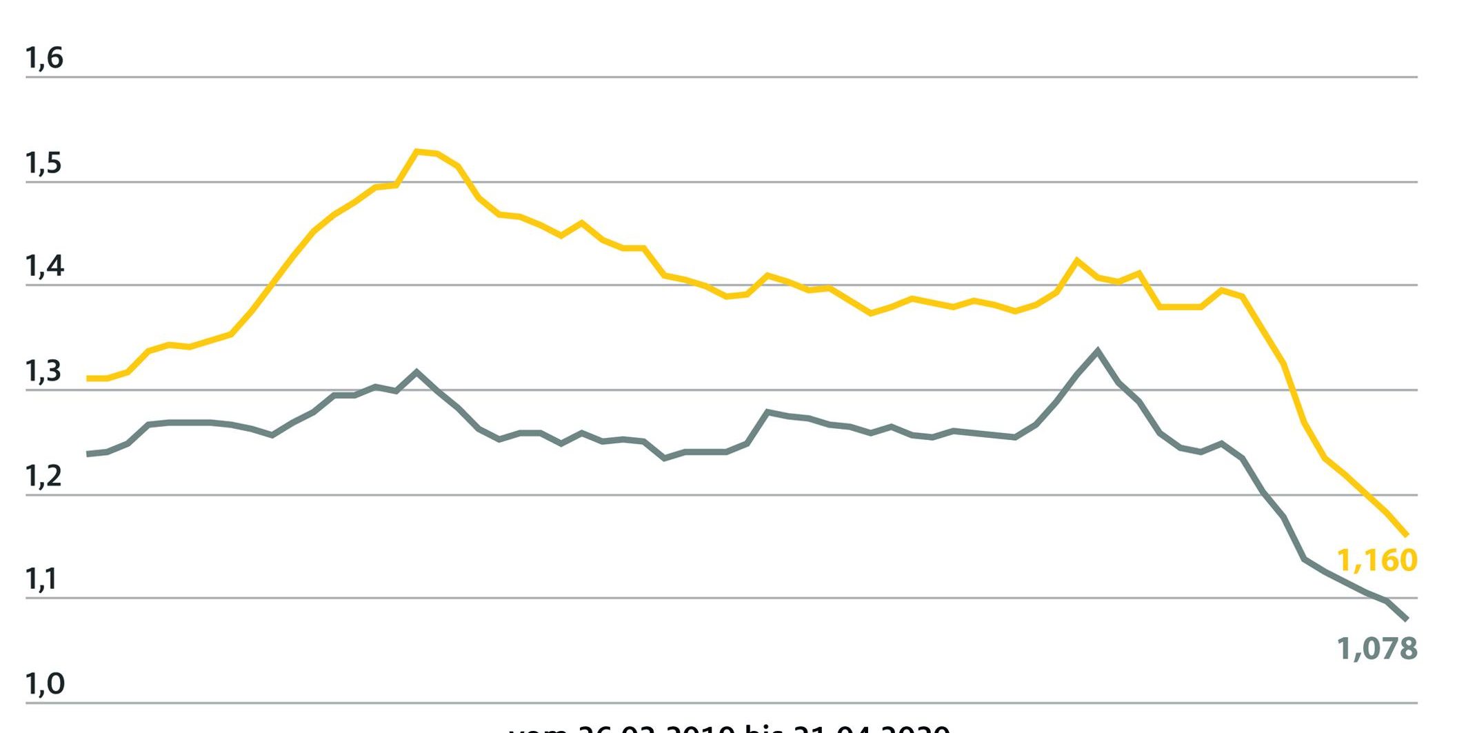 Die rückläufigen Spritpreise stehen im Zusammenhang mit den massiv einbrechenden Rohölnotierungen. Ein Barrel der Sorte Brent kostet aktuell rund 20 Dollar, das sind zehn Dollar weniger als vor einer Woche. Hauptursache für den Einbruch ist die im Zuge der Corona-Krise stark gesunkene Rohöl-Nachfrage bei einem gleichzeitigen Überangebot auf dem Markt. Seit Jahresbeginn ist Rohöl um mehr als 65 Prozent billiger geworden.