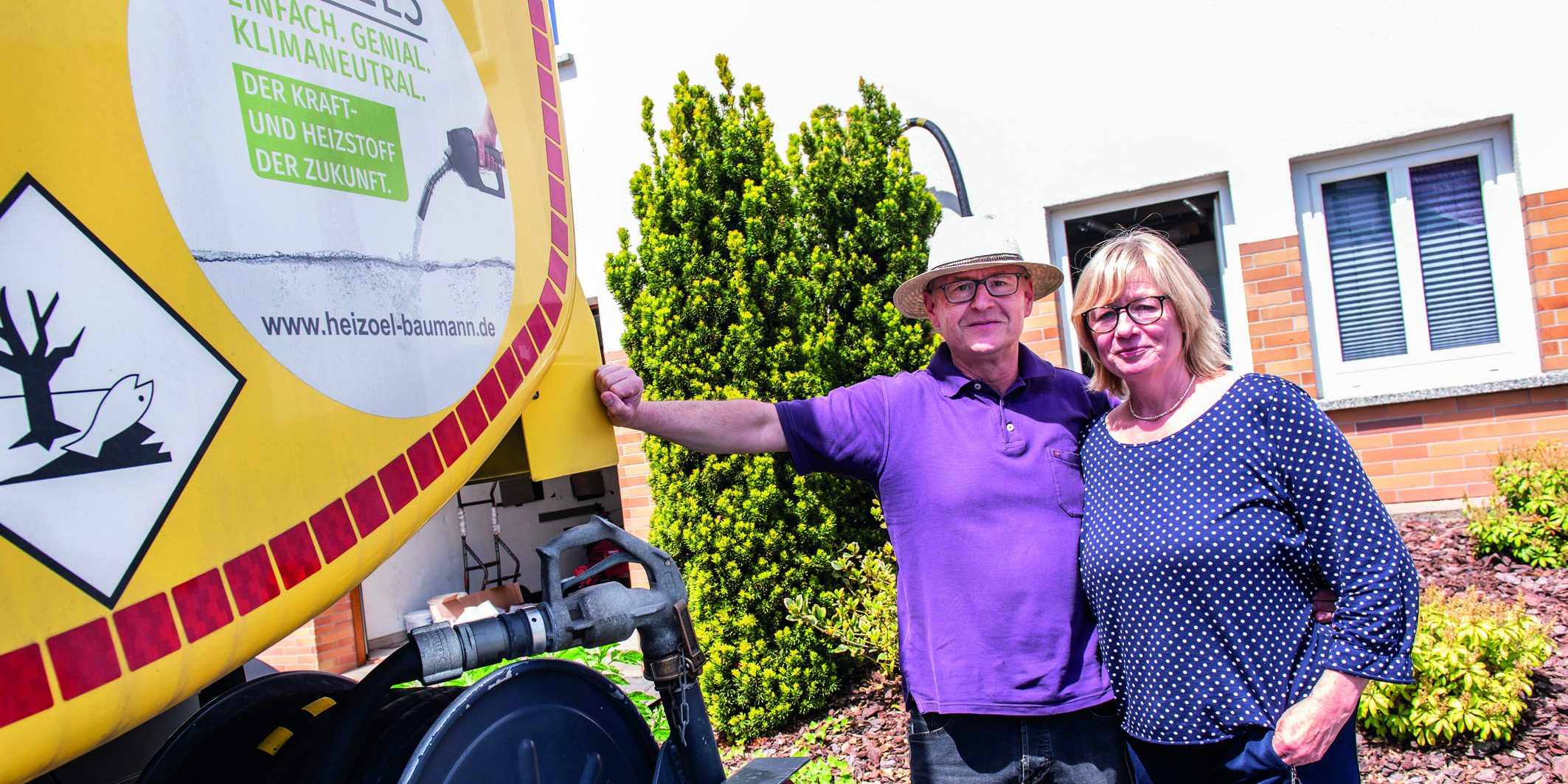 Im oberfränkischen Landkreis Coburg liegt die Gemeinde Itzgrund inmitten einer abwechslungsreichen Landschaft. Hier bewohnt das Ehepaar Krüg ein Haus aus den späten 1960er Jahren. Ursprünglich lebten hier vier Generationen unter einem Dach, inzwischen genießt das Paar den Platz allein. Angesichts steigender Heizkosten zögerten Krügs nicht lang, als sie durch ihren Mineralölhändler auf die Pilotinitiative future:fuels@work aufmerksam wurden: Nach der Modernisierung der Heizung setzen sie jetzt auch auf Heizöl, das mit einem treibhausgasreduzierten flüssigen Energieträger aus biobasierten Reststoffen kombiniert wird. Somit verbrauchen Krügs nun weniger Brennstoff, der zudem geringere Treibhausgasemissionen freisetzt.