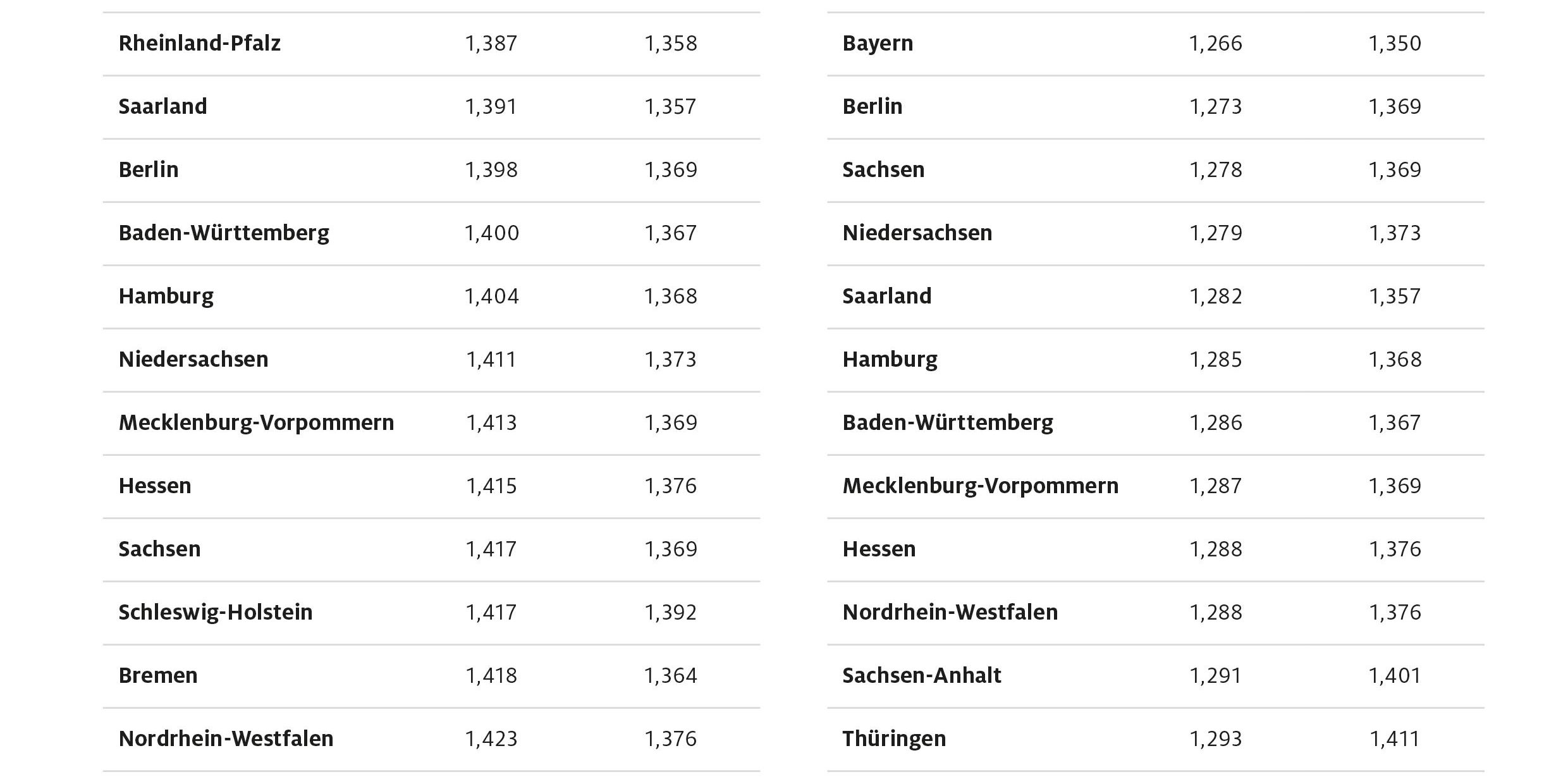 Dieselfahrer tanken momentan in Rheinland-Pfalz besonders preiswert. Ein Liter Diesel kostet im Mittel 1,263 Euro. In Bayern, dem zweitgünstigsten Bundesland beim Diesel, liegt der Preis bei 1,266 Euro. Am teuersten ist der Kraftstoff derzeit in Bremen mit 1,315 Euro. Die Autofahrer zahlen hier 5,2 Cent mehr je Liter als in Rheinland-Pfalz.