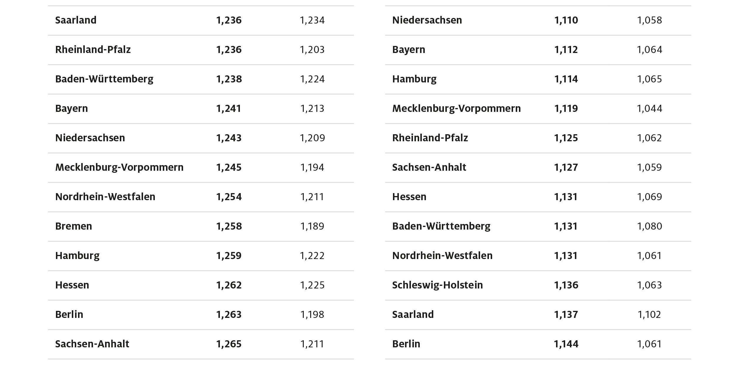 Dieselfahrer zahlen in Brandenburg am meisten: Hier kostet ein Liter Diesel 1,152 Euro, kaum günstiger ist der Kraftstoff mit 1,148 Euro in Bremen, vor Monatsfrist bei der November-Preisanalyse noch günstigstes Bundesland.