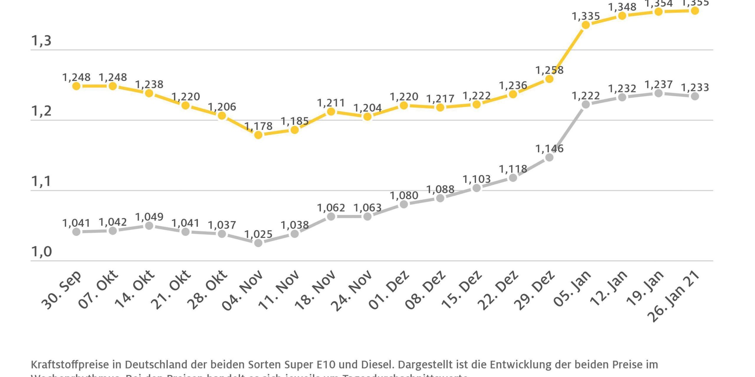 Benzin geringfügig teurer, Diesel etwas günstiger